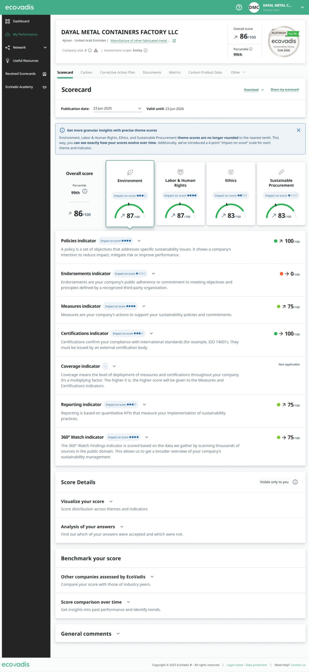 Ecovadis Score Card