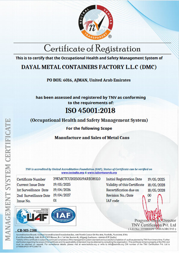 Maintains a QMS system as per ISO 45001:2018
